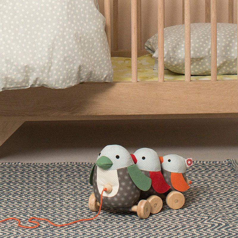 George the penguin pull toy is the perfect companion for a child who has started to walk. Look forward to many hours of fun playing together! Pulling a toy behind you is both stimulating and fun. George the penguin is a safe pull toy made of organic cotton and wooden wheels. It easily becomes a favourite and is perfect as a gift for the first birthday.