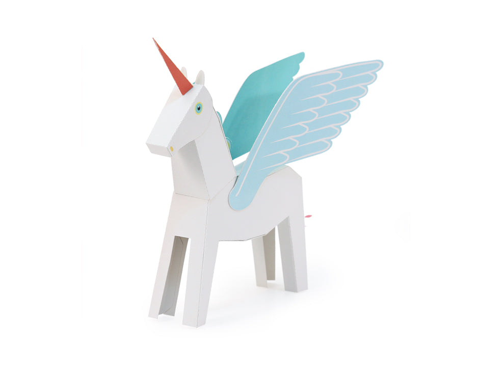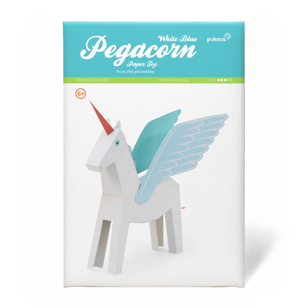 Paper toy Unicorn from Pukaca is a great sustainable DIY kit for the whole family! Technically, this is a Pegacorn, a combination of a pegasus (winged horse) and a unicorn. That means you can assemble it as you like: with or without wings and horn. We think it looks amazing in all ways! The head can move sideways.