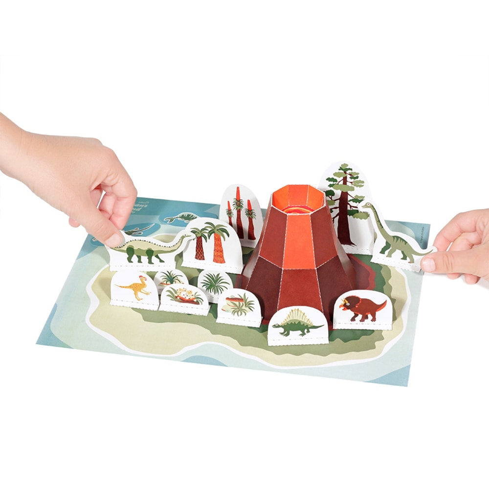 Paper toy playset Dinosaur Island from Pukaca is a great sustainable DIY kit for the whole family! Go back in time with this paper toy that has endless possibilities of variation. With fourteen different dinosaurs, a vulcano that can erupt with lava (when you decide) and eight extra paper figures, you can create an amazing story about what this planet was like many, many, years ago.