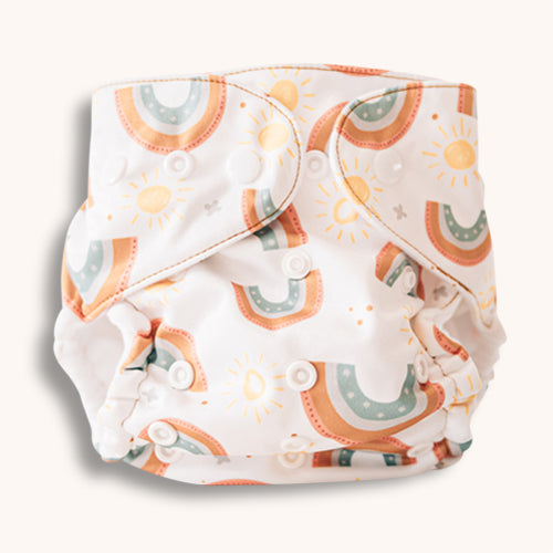 After use: Remove poo from the diaper and place the diaper in a diaper bag or diaper pail (dry, not wet). Wash the diapers at 40-60 degrees at least every other day to avoid mold. Hang dry (most environmentally friendly of course) or tumble dry on low heat.