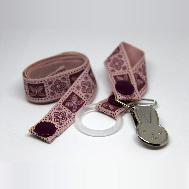 Napphållaren har en riktigt bra metallklämma för att den ska sitta kvar när små starka barnarmar drar i den. Den är också utrustad med en tryckknapp för att du ska kunna fästa den kring tex barnvagnsstyret när den inte används. De är ju annars så lätta att tappa bort!